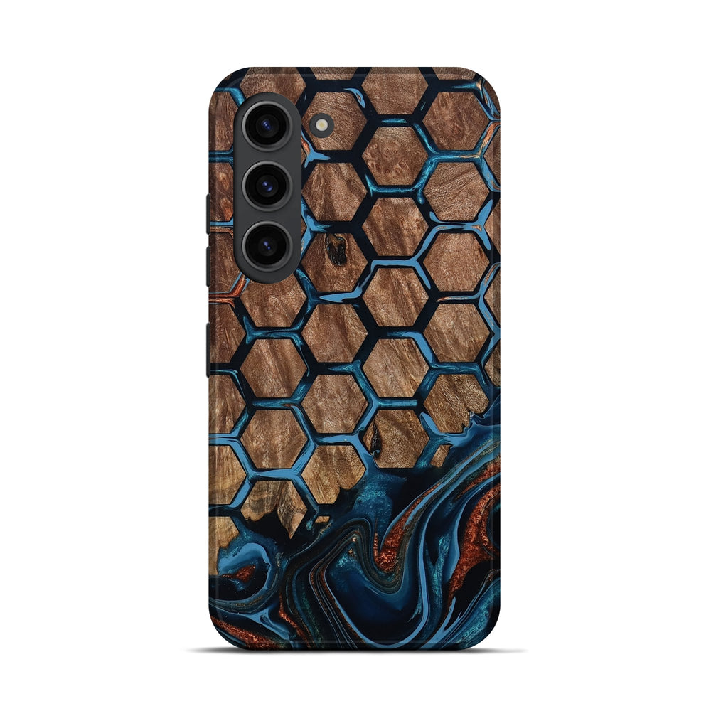 Our Live Edge cases are made from an amazing combination of stabilized wood burl and colored resin. Our stabilization process hardens the wood to protect against cracks and breaks. We do every step of the process at our shop in Northern Indiana. Perfectly fits the Galaxy S23.