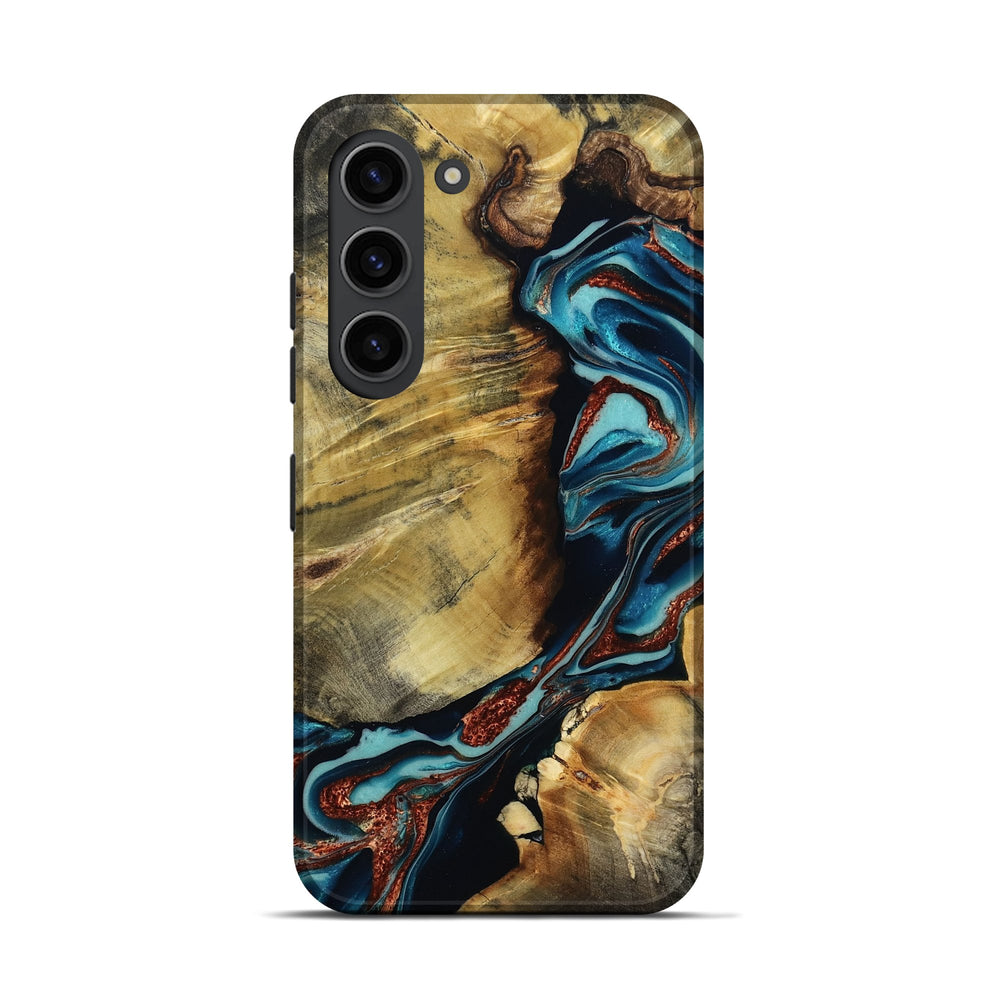 Our Live Edge cases are made from an amazing combination of stabilized wood burl and colored resin. Our stabilization process hardens the wood to protect against cracks and breaks. We do every step of the process at our shop in Northern Indiana. Perfectly fits the Galaxy S23.