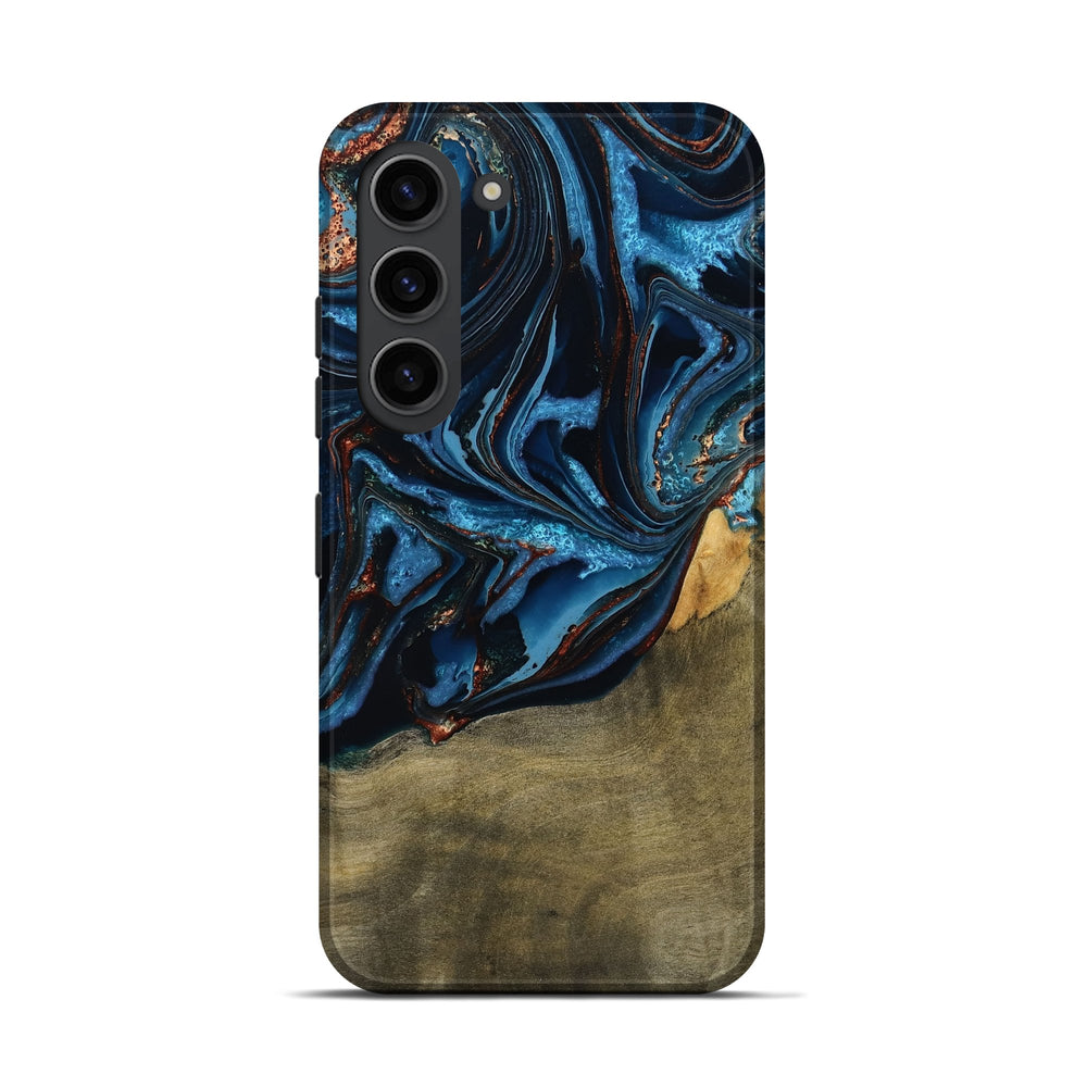Our Live Edge cases are made from an amazing combination of stabilized wood burl and colored resin. Our stabilization process hardens the wood to protect against cracks and breaks. We do every step of the process at our shop in Northern Indiana. Perfectly fits the Galaxy S23.
