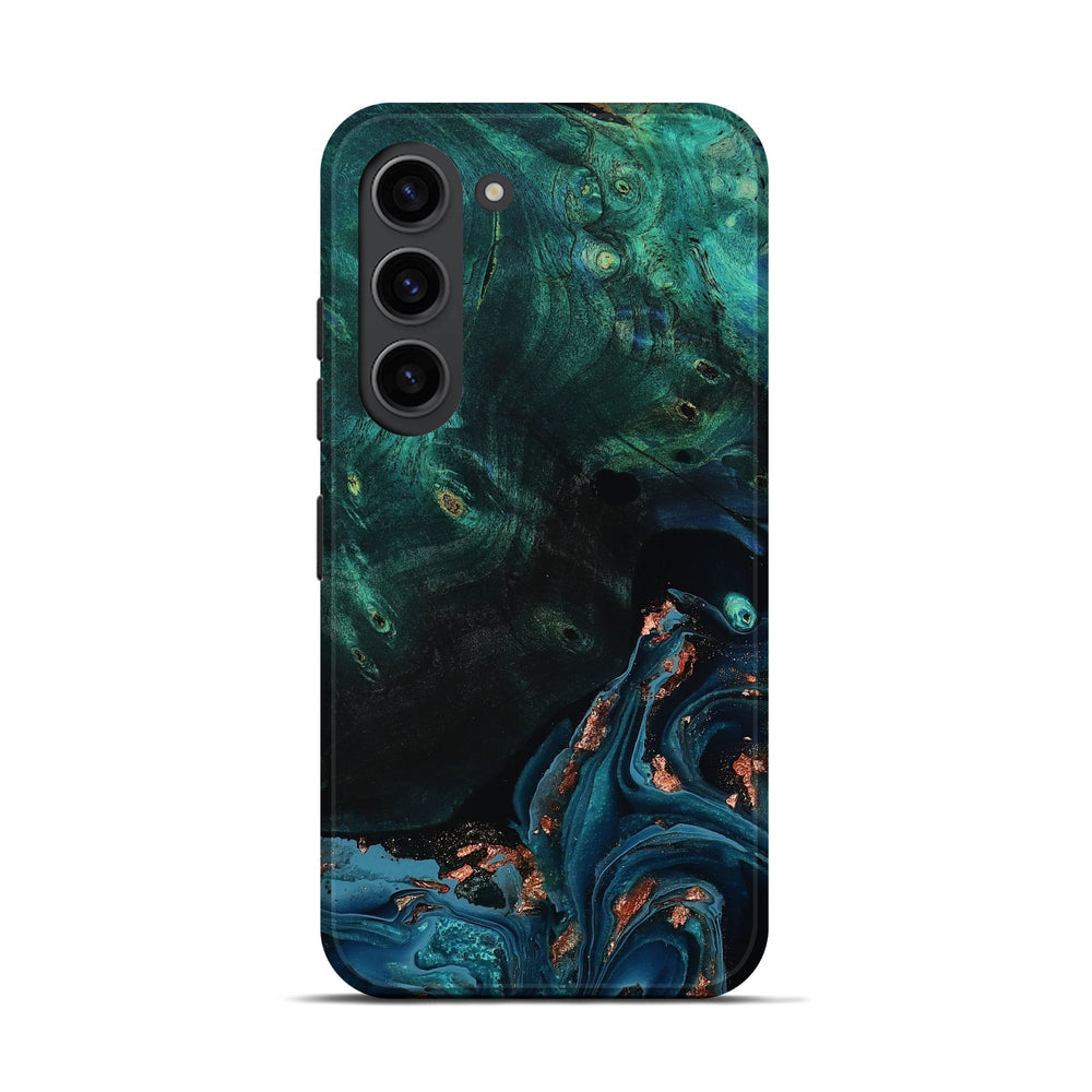 Our Live Edge cases are made from an amazing combination of stabilized wood burl and colored resin. Our stabilization process hardens the wood to protect against cracks and breaks. We do every step of the process at our shop in Northern Indiana. Perfectly fits the Galaxy S23.
