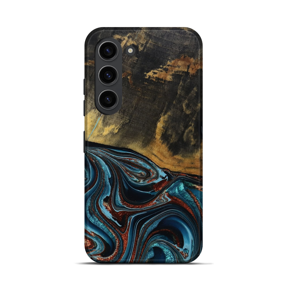 Our Live Edge cases are made from an amazing combination of stabilized wood burl and colored resin. Our stabilization process hardens the wood to protect against cracks and breaks. We do every step of the process at our shop in Northern Indiana. Perfectly fits the Galaxy S23.