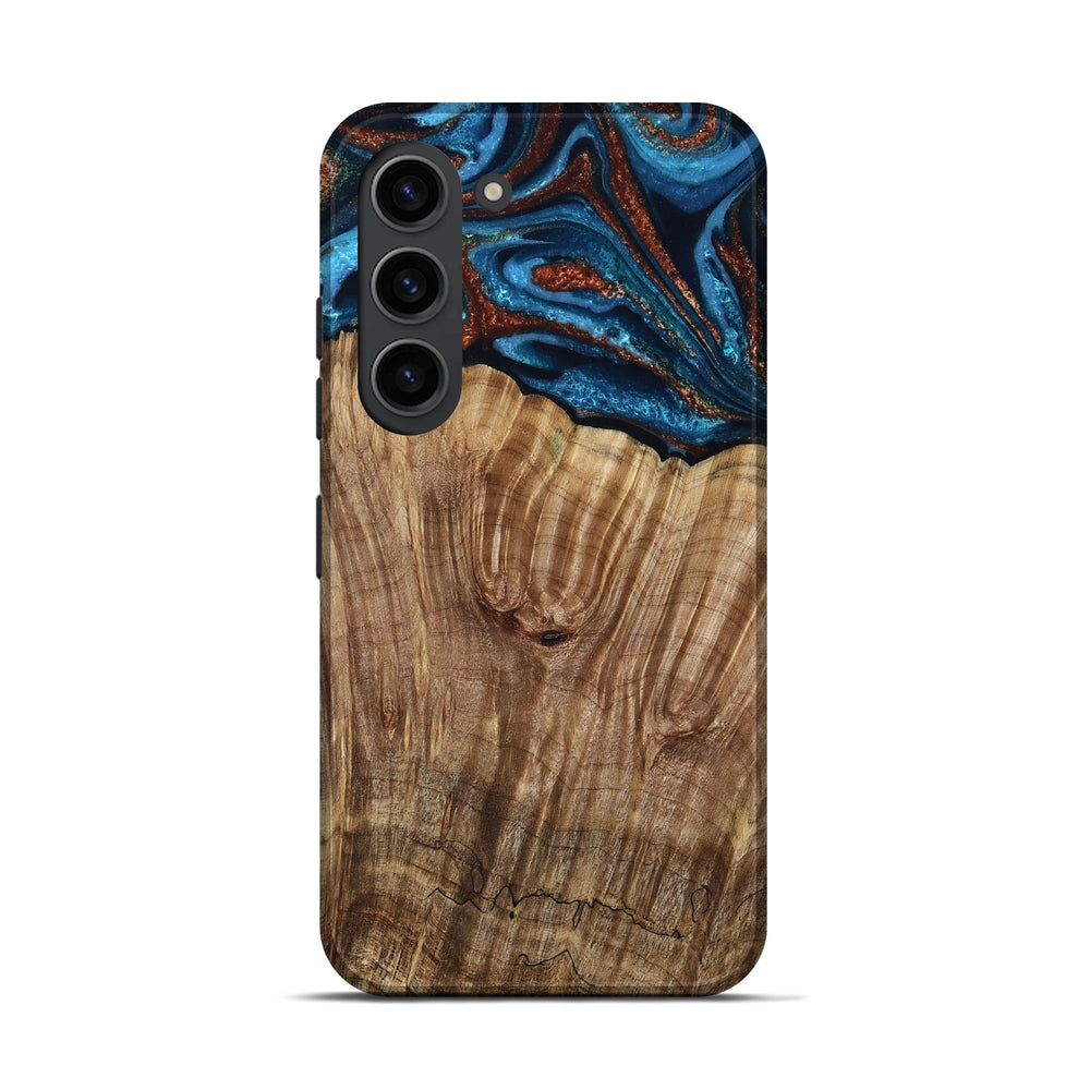 Our Live Edge cases are made from an amazing combination of stabilized wood burl and colored resin. Our stabilization process hardens the wood to protect against cracks and breaks. We do every step of the process at our shop in Northern Indiana. Perfectly fits the Galaxy S23.