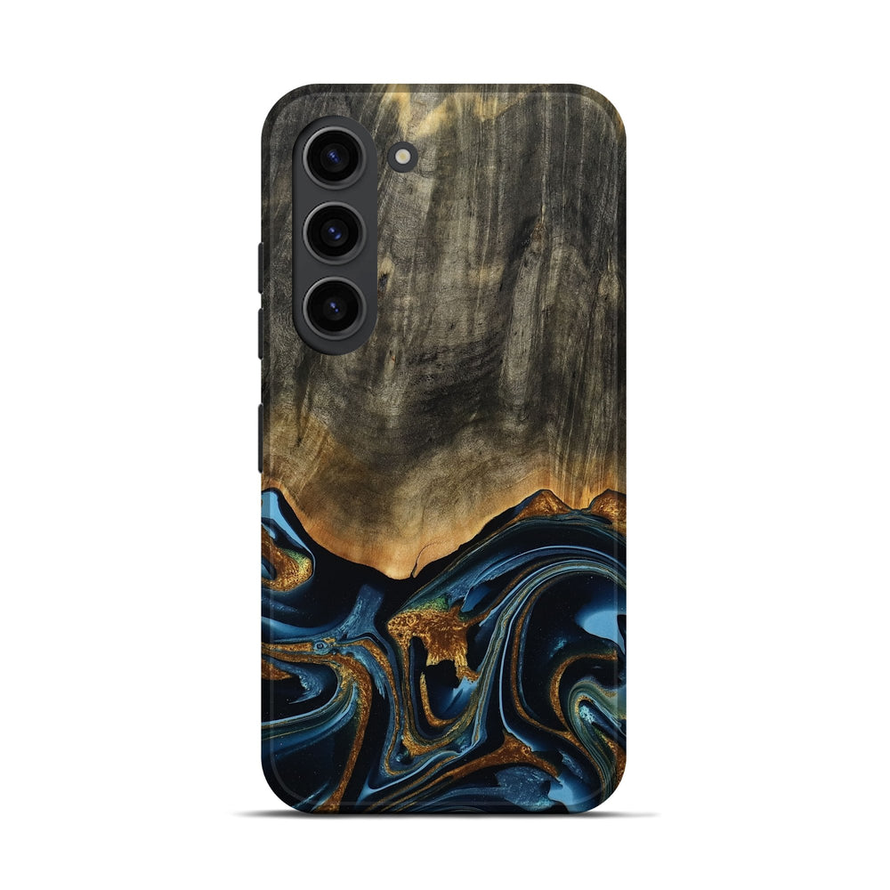 Our Live Edge cases are made from an amazing combination of stabilized wood burl and colored resin. Our stabilization process hardens the wood to protect against cracks and breaks. We do every step of the process at our shop in Northern Indiana. Perfectly fits the Galaxy S23.
