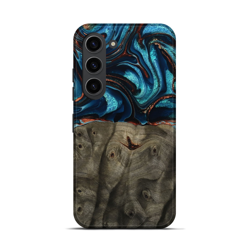 Our Live Edge cases are made from an amazing combination of stabilized wood burl and colored resin. Our stabilization process hardens the wood to protect against cracks and breaks. We do every step of the process at our shop in Northern Indiana. Perfectly fits the Galaxy S23.