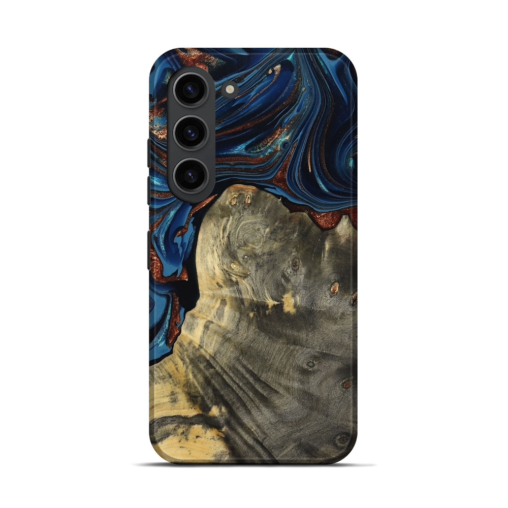Our Live Edge cases are made from an amazing combination of stabilized wood burl and colored resin. Our stabilization process hardens the wood to protect against cracks and breaks. We do every step of the process at our shop in Northern Indiana. Perfectly fits the Galaxy S23.