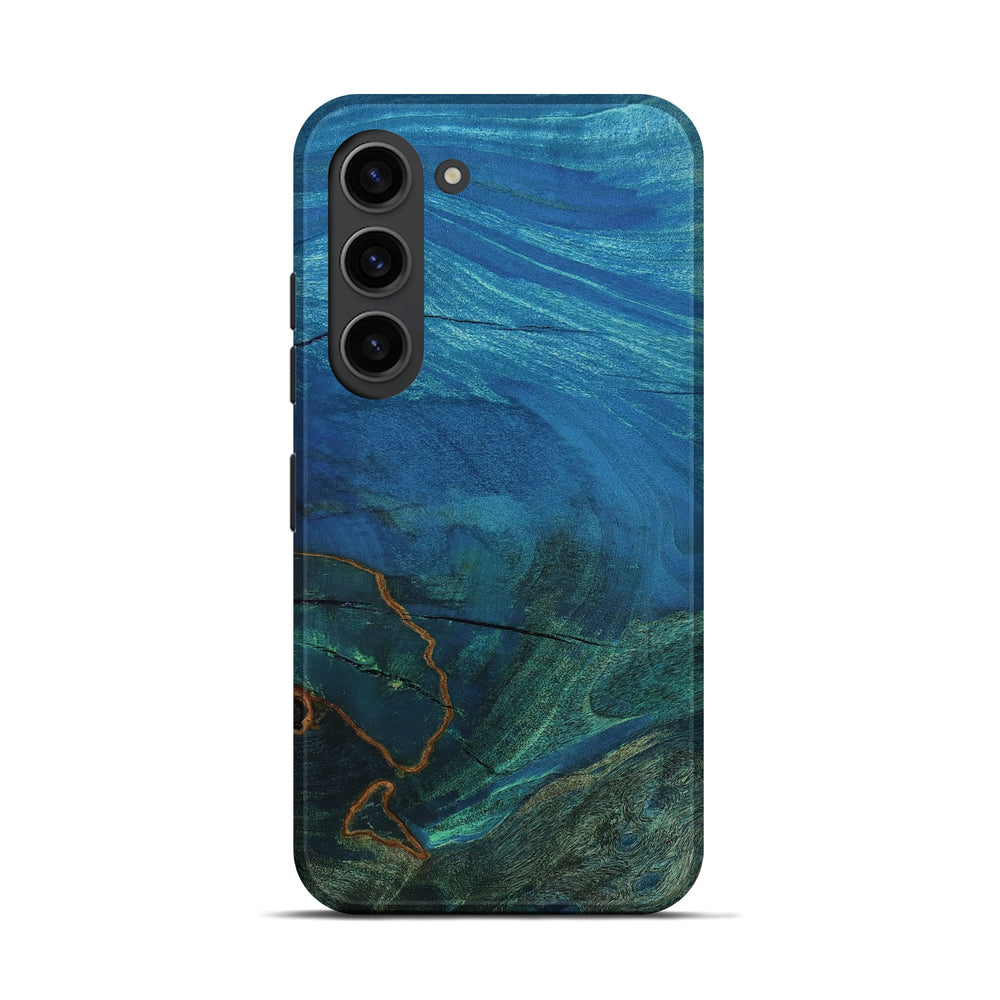 Our Live Edge cases are made from an amazing combination of stabilized wood burl and colored resin. Our stabilization process hardens the wood to protect against cracks and breaks. We do every step of the process at our shop in Northern Indiana. Perfectly fits the Galaxy S23.