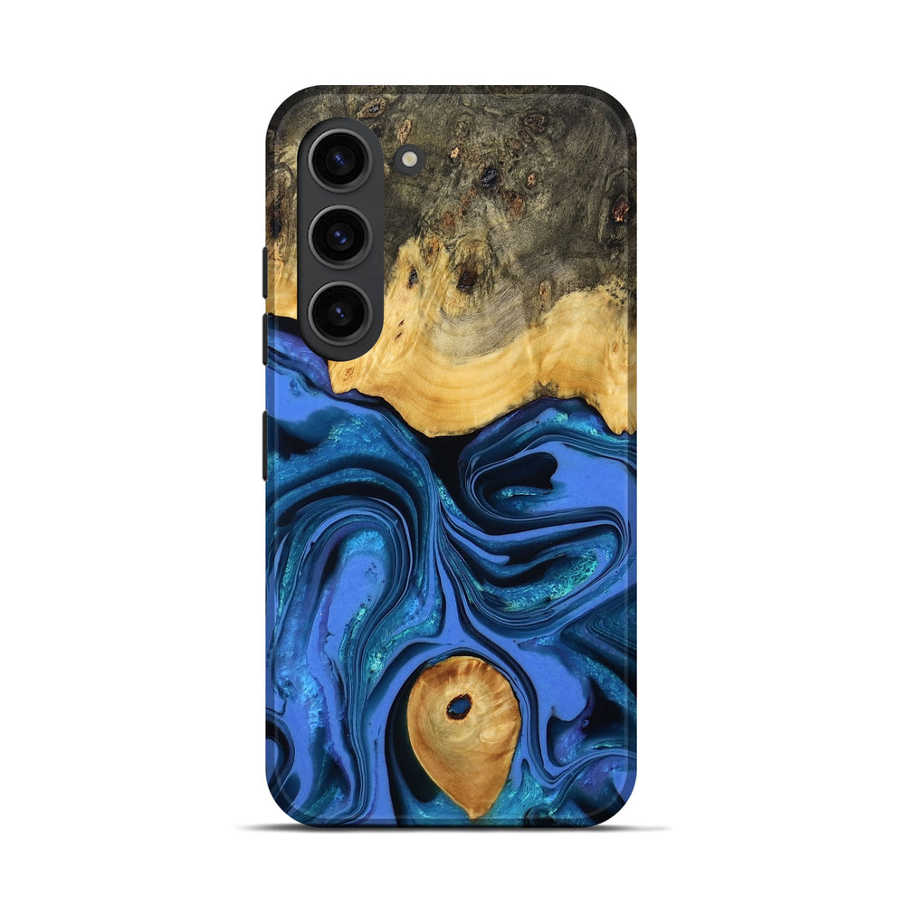 Our Live Edge cases are made from an amazing combination of stabilized wood burl and colored resin. Our stabilization process hardens the wood to protect against cracks and breaks. We do every step of the process at our shop in Northern Indiana. Perfectly fits the Galaxy S23.