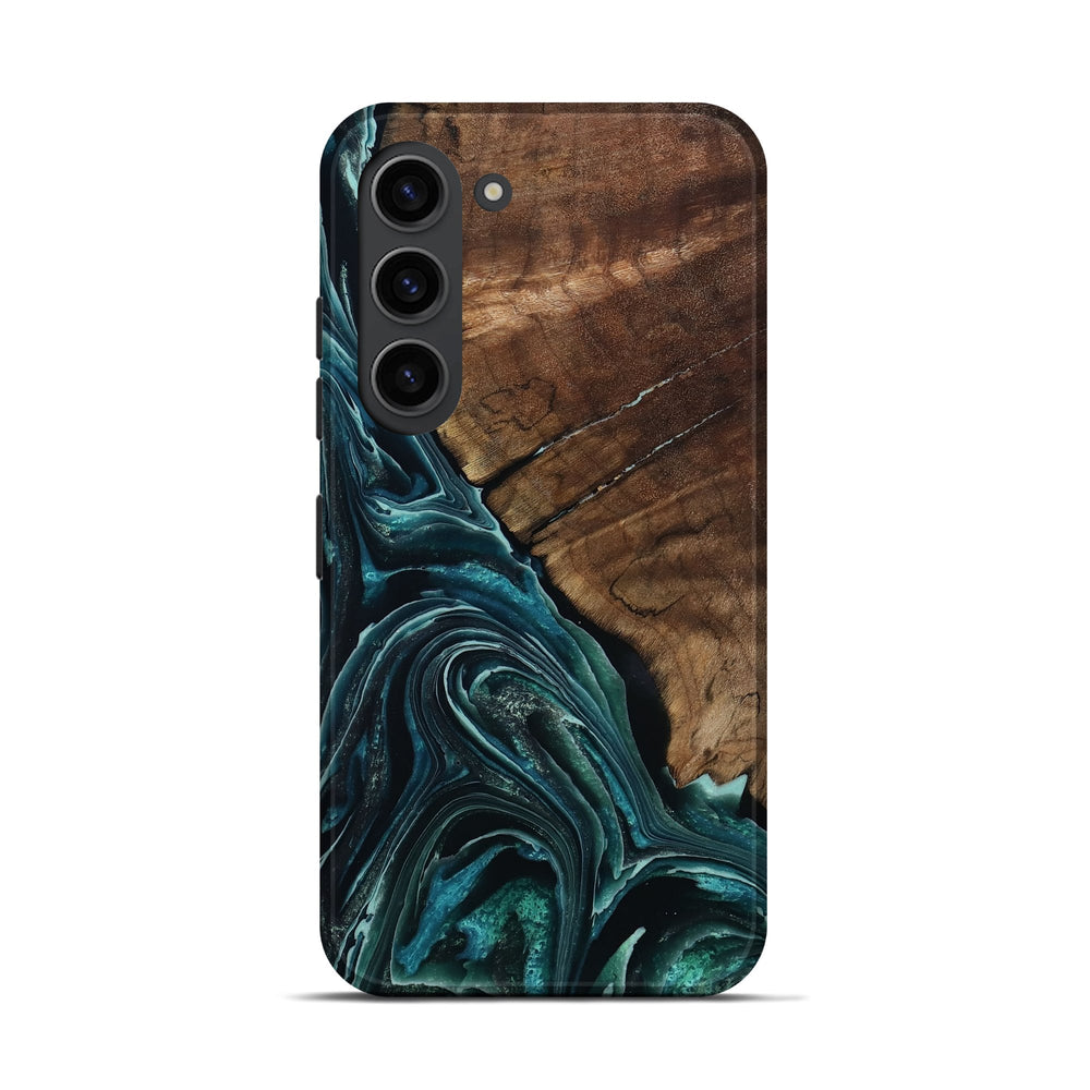 Our Live Edge cases are made from an amazing combination of stabilized wood burl and colored resin. Our stabilization process hardens the wood to protect against cracks and breaks. We do every step of the process at our shop in Northern Indiana. Perfectly fits the Galaxy S23.