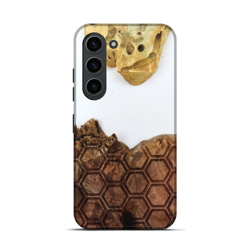 Our Live Edge cases are made from an amazing combination of stabilized wood burl and colored resin. Our stabilization process hardens the wood to protect against cracks and breaks. We do every step of the process at our shop in Northern Indiana. Perfectly fits the Galaxy S23.