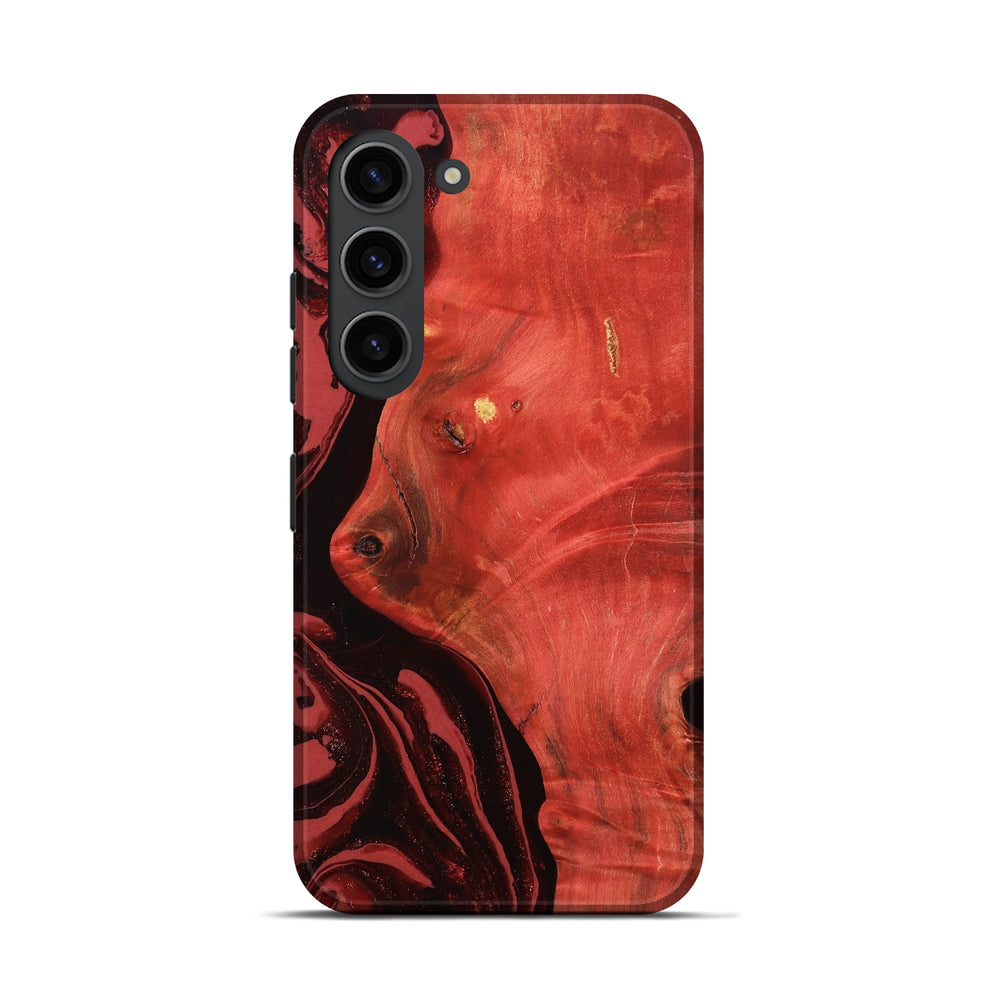 Our Live Edge cases are made from an amazing combination of stabilized wood burl and colored resin. Our stabilization process hardens the wood to protect against cracks and breaks. We do every step of the process at our shop in Northern Indiana. Perfectly fits the Galaxy S23.