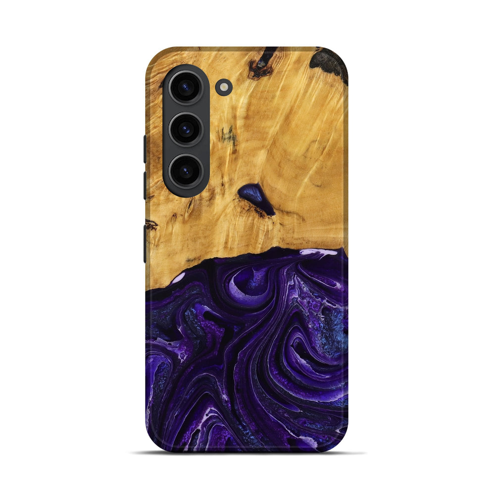 Our Live Edge cases are made from an amazing combination of stabilized wood burl and colored resin. Our stabilization process hardens the wood to protect against cracks and breaks. We do every step of the process at our shop in Northern Indiana. Perfectly fits the Galaxy S23.