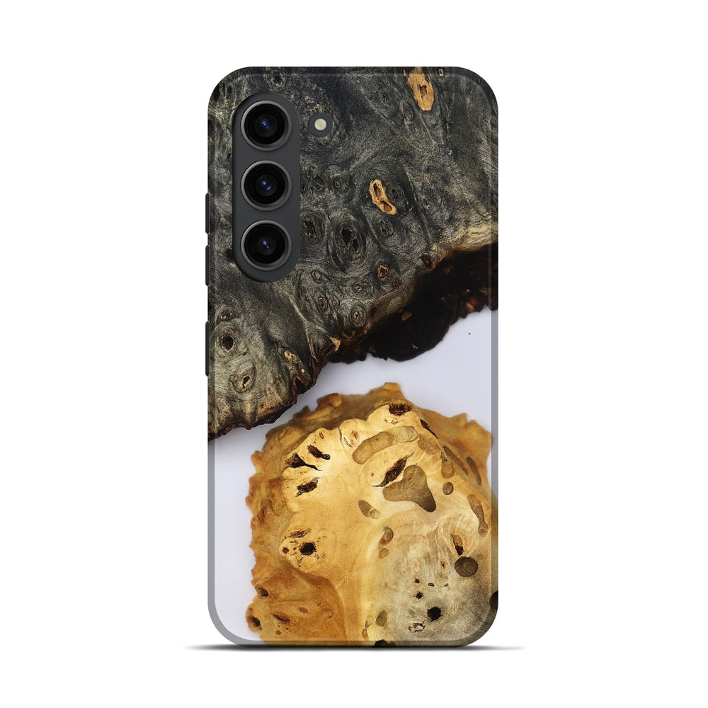 Our Live Edge cases are made from an amazing combination of stabilized wood burl and colored resin. Our stabilization process hardens the wood to protect against cracks and breaks. We do every step of the process at our shop in Northern Indiana. Perfectly fits the Galaxy S23.