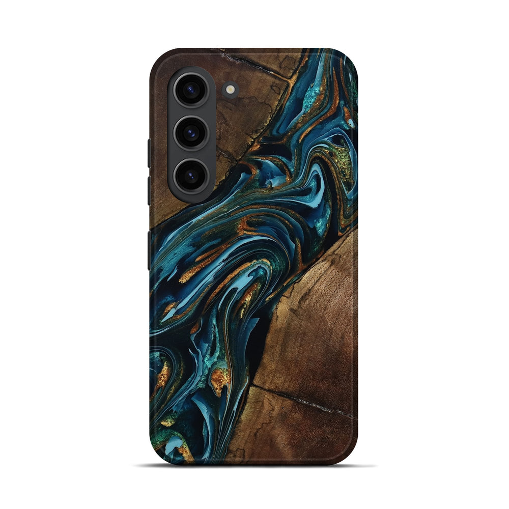 Our Live Edge cases are made from an amazing combination of stabilized wood burl and colored resin. Our stabilization process hardens the wood to protect against cracks and breaks. We do every step of the process at our shop in Northern Indiana. Perfectly fits the Galaxy S23.