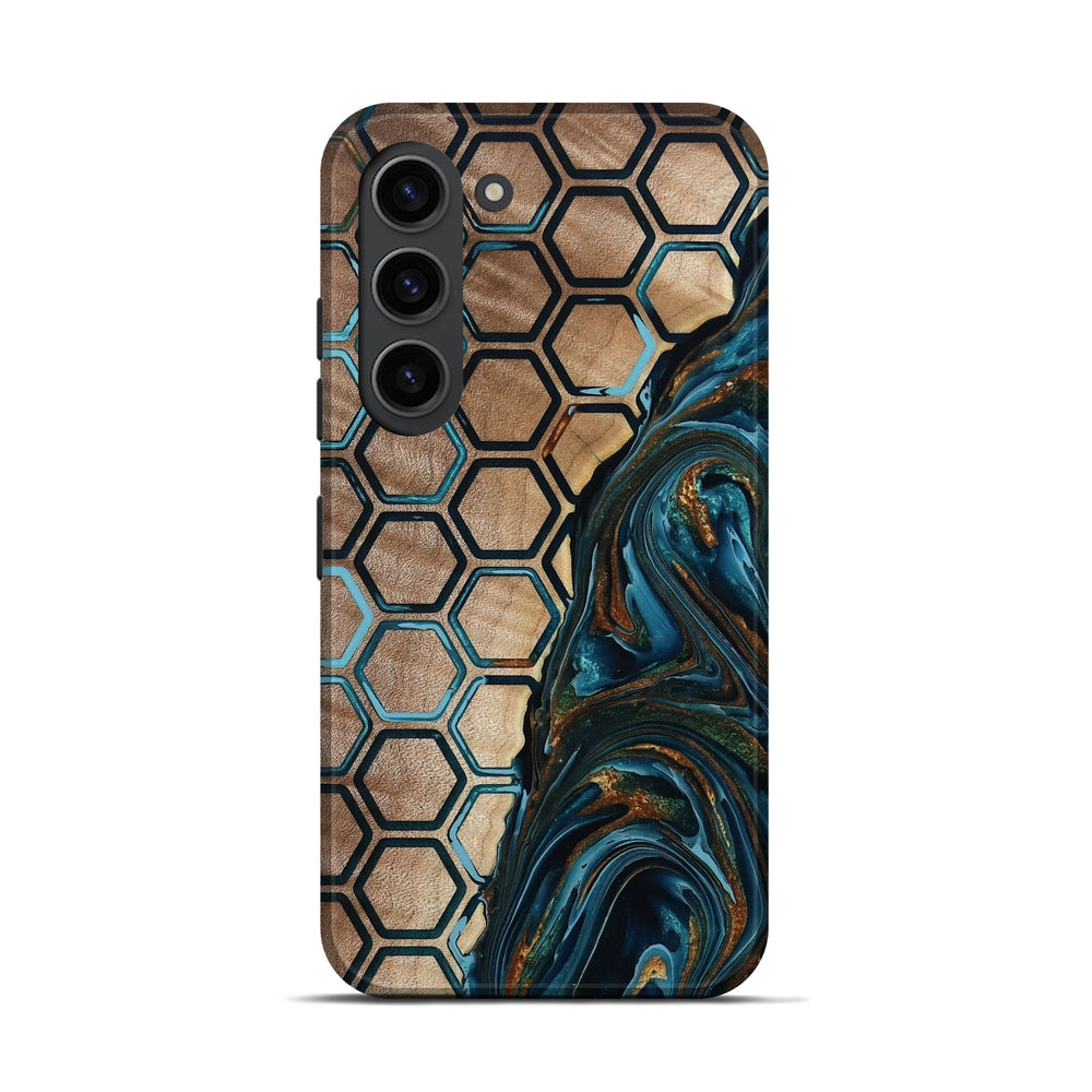 Our Live Edge cases are made from an amazing combination of stabilized wood burl and colored resin. Our stabilization process hardens the wood to protect against cracks and breaks. We do every step of the process at our shop in Northern Indiana. Perfectly fits the Galaxy S23.