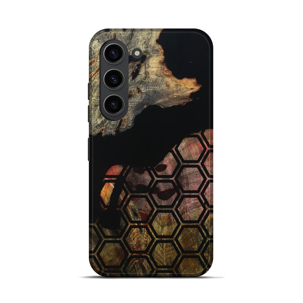 Our Live Edge cases are made from an amazing combination of stabilized wood burl and colored resin. Our stabilization process hardens the wood to protect against cracks and breaks. We do every step of the process at our shop in Northern Indiana. Perfectly fits the Galaxy S23.