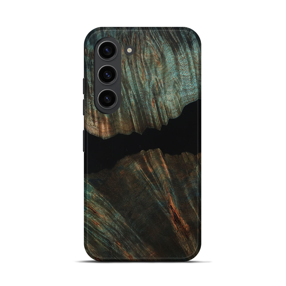 Our Live Edge cases are made from an amazing combination of stabilized wood burl and colored resin. Our stabilization process hardens the wood to protect against cracks and breaks. We do every step of the process at our shop in Northern Indiana. Perfectly fits the Galaxy S23.