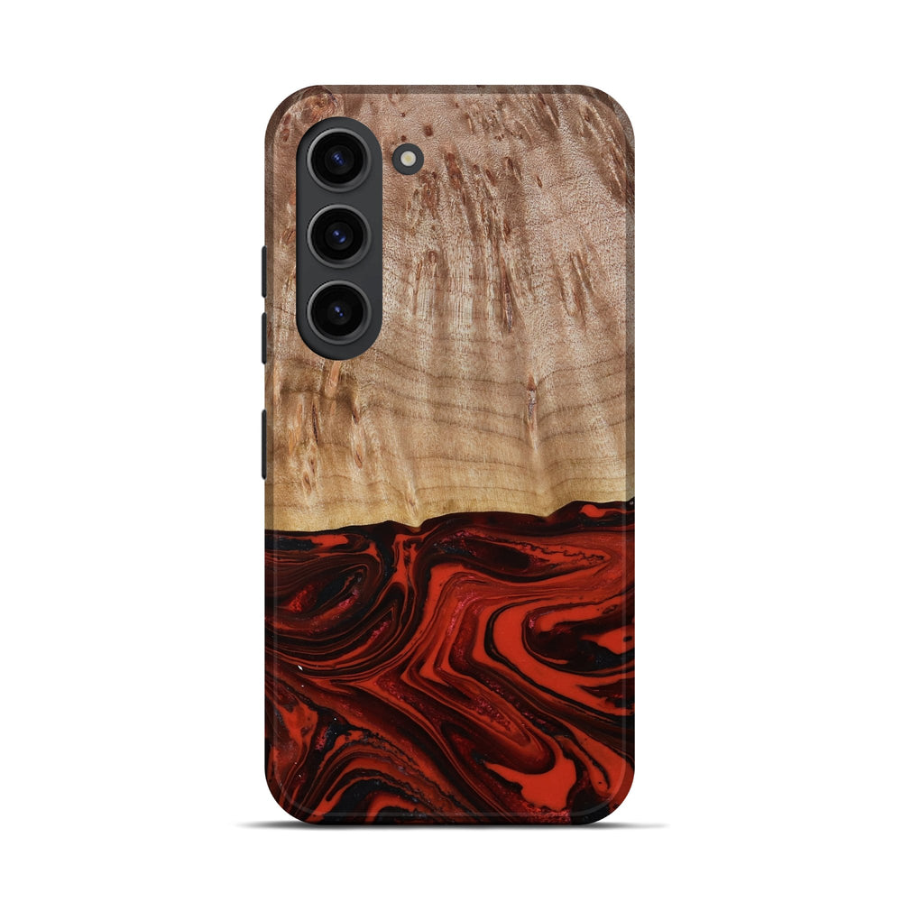 Our Live Edge cases are made from an amazing combination of stabilized wood burl and colored resin. Our stabilization process hardens the wood to protect against cracks and breaks. We do every step of the process at our shop in Northern Indiana. Perfectly fits the Galaxy S23.