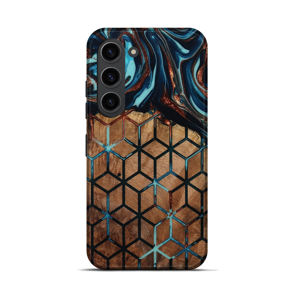 Our Live Edge cases are made from an amazing combination of stabilized wood burl and colored resin. Our stabilization process hardens the wood to protect against cracks and breaks. We do every step of the process at our shop in Northern Indiana. Perfectly fits the Galaxy S23.
