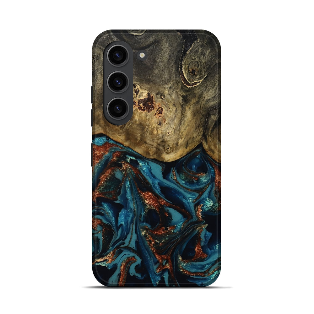 Our Live Edge cases are made from an amazing combination of stabilized wood burl and colored resin. Our stabilization process hardens the wood to protect against cracks and breaks. We do every step of the process at our shop in Northern Indiana. Perfectly fits the Galaxy S23.