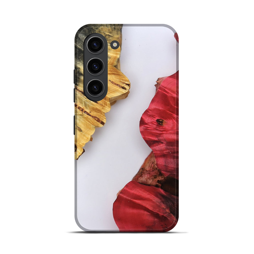 Our Live Edge cases are made from an amazing combination of stabilized wood burl and colored resin. Our stabilization process hardens the wood to protect against cracks and breaks. We do every step of the process at our shop in Northern Indiana. Perfectly fits the Galaxy S23.