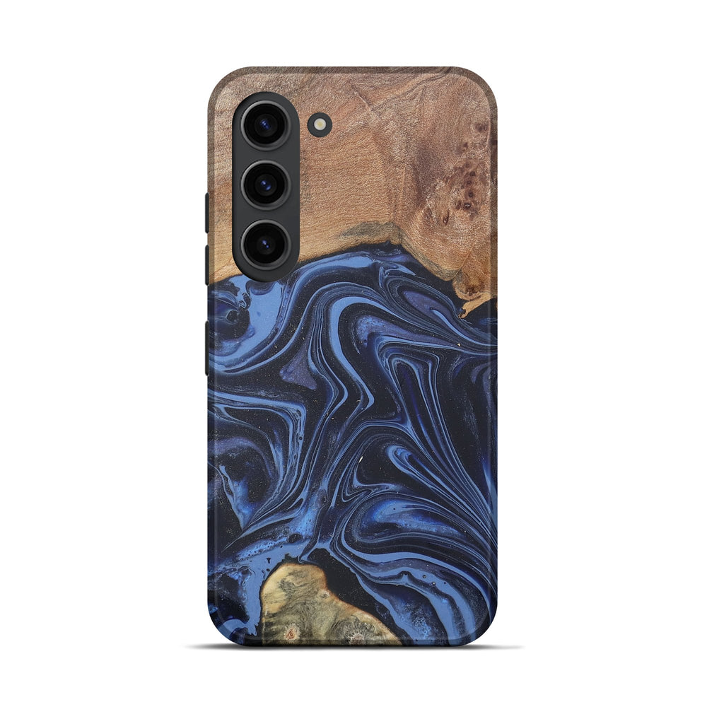 Our Live Edge cases are made from an amazing combination of stabilized wood burl and colored resin. Our stabilization process hardens the wood to protect against cracks and breaks. We do every step of the process at our shop in Northern Indiana. Perfectly fits the Galaxy S23.