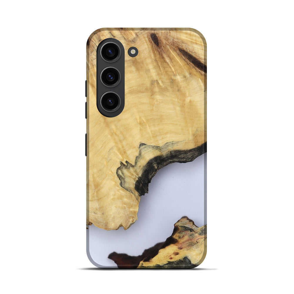 Our Live Edge cases are made from an amazing combination of stabilized wood burl and colored resin. Our stabilization process hardens the wood to protect against cracks and breaks. We do every step of the process at our shop in Northern Indiana. Perfectly fits the Galaxy S23.