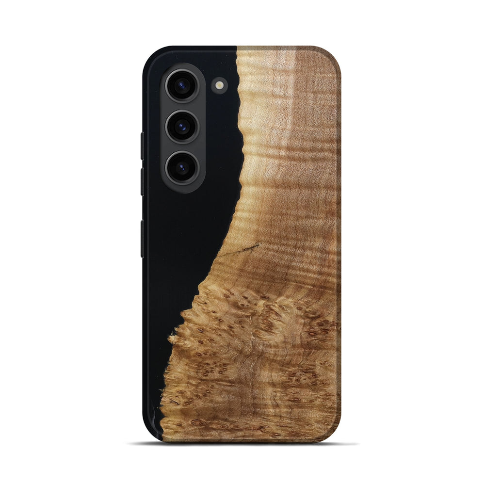 Our Live Edge cases are made from an amazing combination of stabilized wood burl and colored resin. Our stabilization process hardens the wood to protect against cracks and breaks. We do every step of the process at our shop in Northern Indiana. Perfectly fits the Galaxy S23.