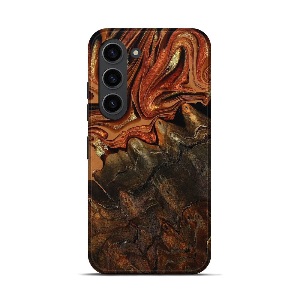 Our Live Edge cases are made from an amazing combination of stabilized wood burl and colored resin. Our stabilization process hardens the wood to protect against cracks and breaks. We do every step of the process at our shop in Northern Indiana. Perfectly fits the Galaxy S23.