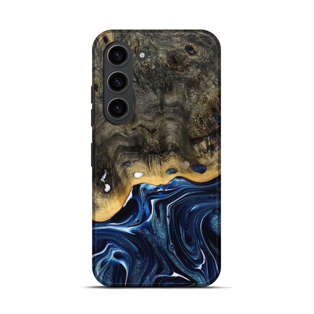 Our Live Edge cases are made from an amazing combination of stabilized wood burl and colored resin. Our stabilization process hardens the wood to protect against cracks and breaks. We do every step of the process at our shop in Northern Indiana. Perfectly fits the Galaxy S23.