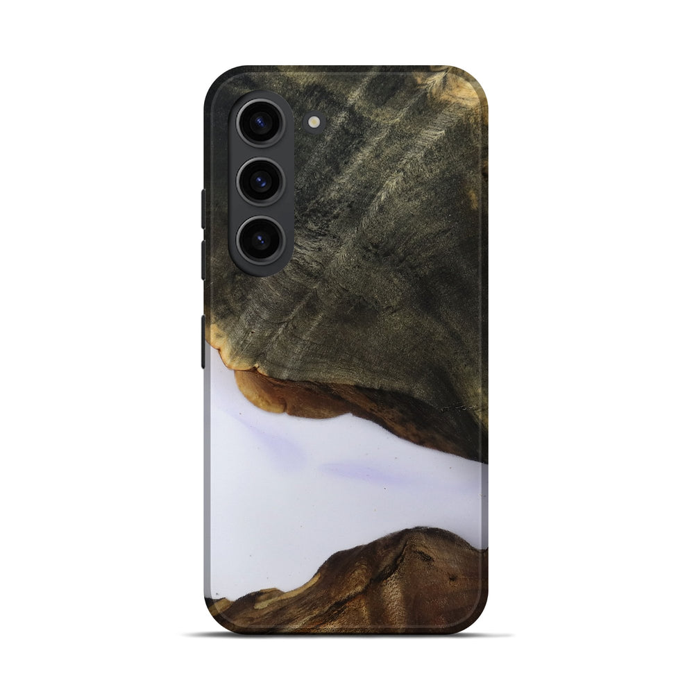 Our Live Edge cases are made from an amazing combination of stabilized wood burl and colored resin. Our stabilization process hardens the wood to protect against cracks and breaks. We do every step of the process at our shop in Northern Indiana. Perfectly fits the Galaxy S23.