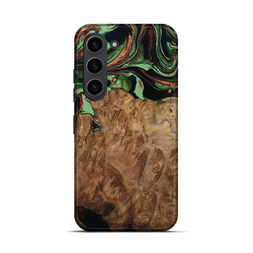 Our Live Edge cases are made from an amazing combination of stabilized wood burl and colored resin. Our stabilization process hardens the wood to protect against cracks and breaks. We do every step of the process at our shop in Northern Indiana. Perfectly fits the Galaxy S23.