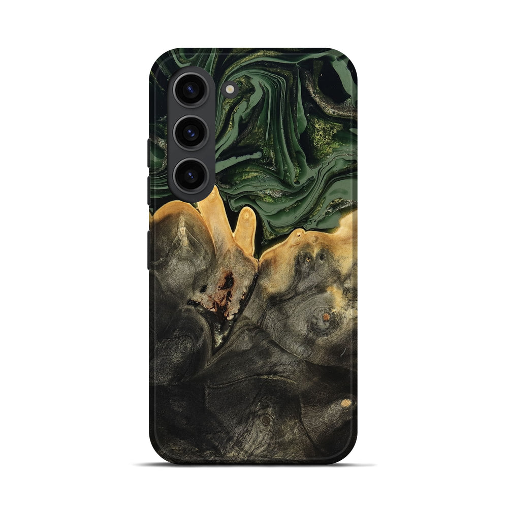 Our Live Edge cases are made from an amazing combination of stabilized wood burl and colored resin. Our stabilization process hardens the wood to protect against cracks and breaks. We do every step of the process at our shop in Northern Indiana. Perfectly fits the Galaxy S23.