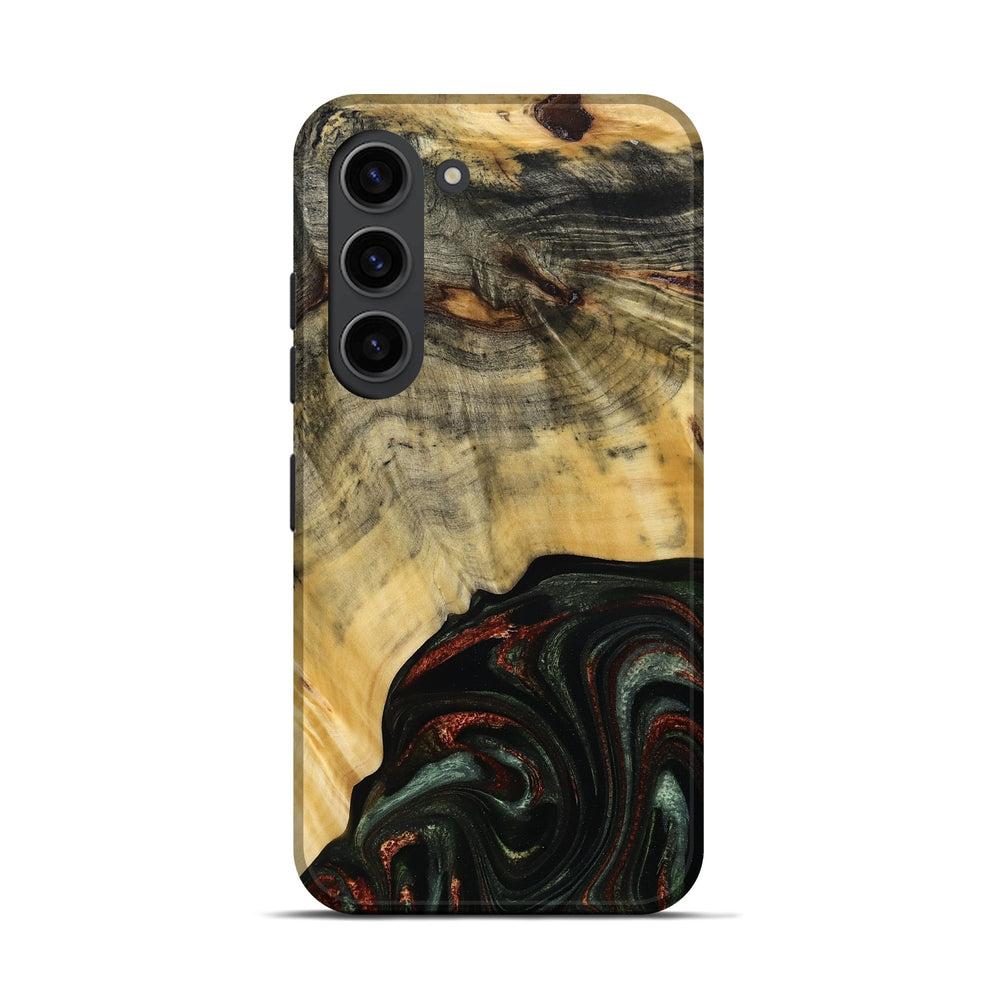 Our Live Edge cases are made from an amazing combination of stabilized wood burl and colored resin. Our stabilization process hardens the wood to protect against cracks and breaks. We do every step of the process at our shop in Northern Indiana. Perfectly fits the Galaxy S23.