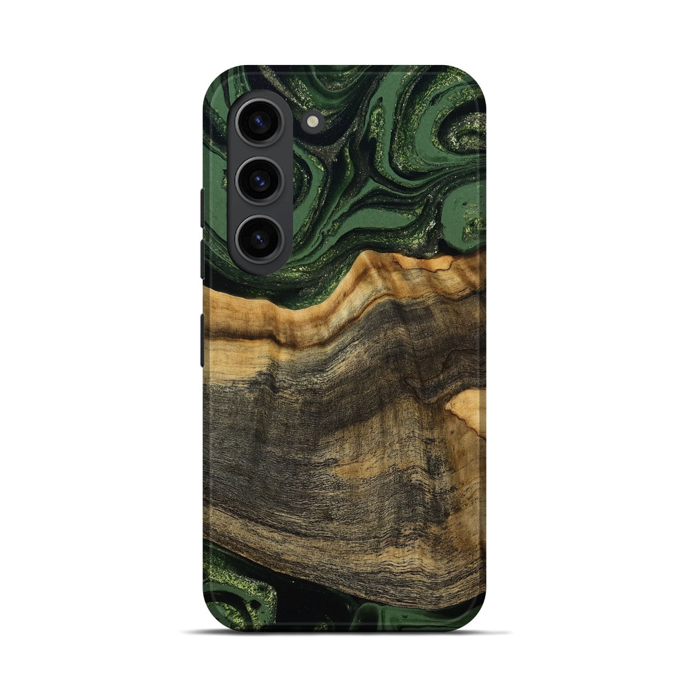 Our Live Edge cases are made from an amazing combination of stabilized wood burl and colored resin. Our stabilization process hardens the wood to protect against cracks and breaks. We do every step of the process at our shop in Northern Indiana. Perfectly fits the Galaxy S23.