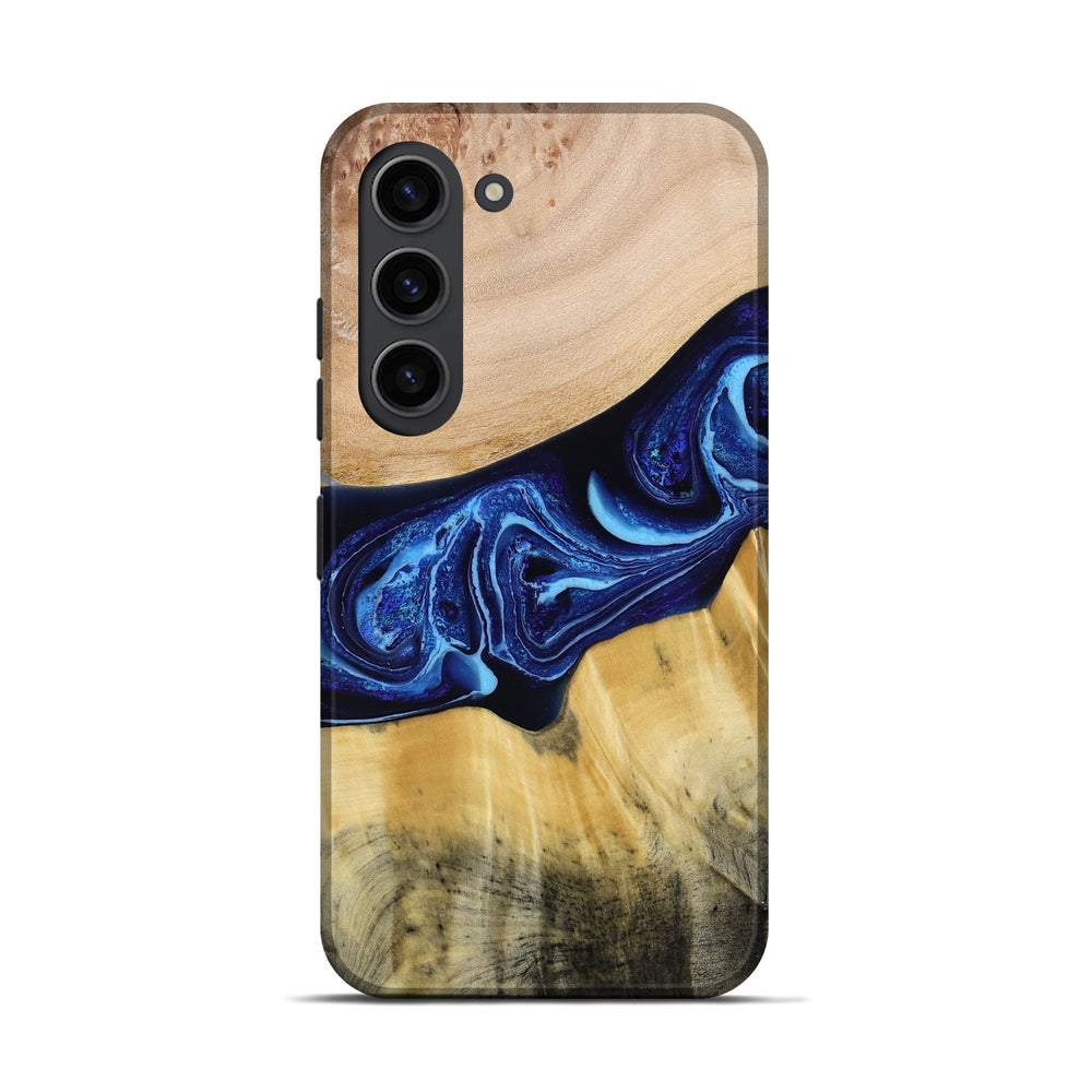 Our Live Edge cases are made from an amazing combination of stabilized wood burl and colored resin. Our stabilization process hardens the wood to protect against cracks and breaks. We do every step of the process at our shop in Northern Indiana. Perfectly fits the Galaxy S23.