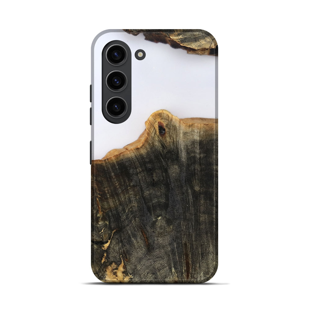 Our Live Edge cases are made from an amazing combination of stabilized wood burl and colored resin. Our stabilization process hardens the wood to protect against cracks and breaks. We do every step of the process at our shop in Northern Indiana. Perfectly fits the Galaxy S23.