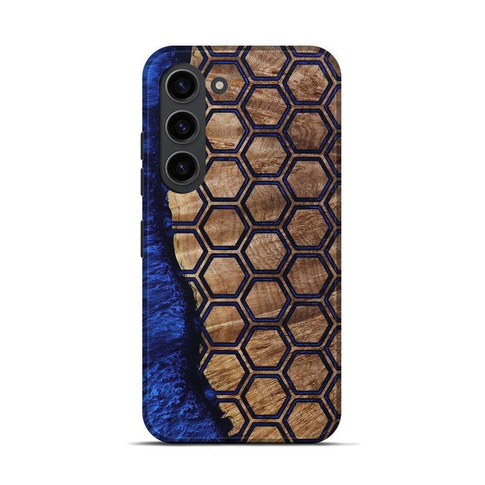 Our Live Edge cases are made from an amazing combination of stabilized wood burl and colored resin. Our stabilization process hardens the wood to protect against cracks and breaks. We do every step of the process at our shop in Northern Indiana. Perfectly fits the Galaxy S23.