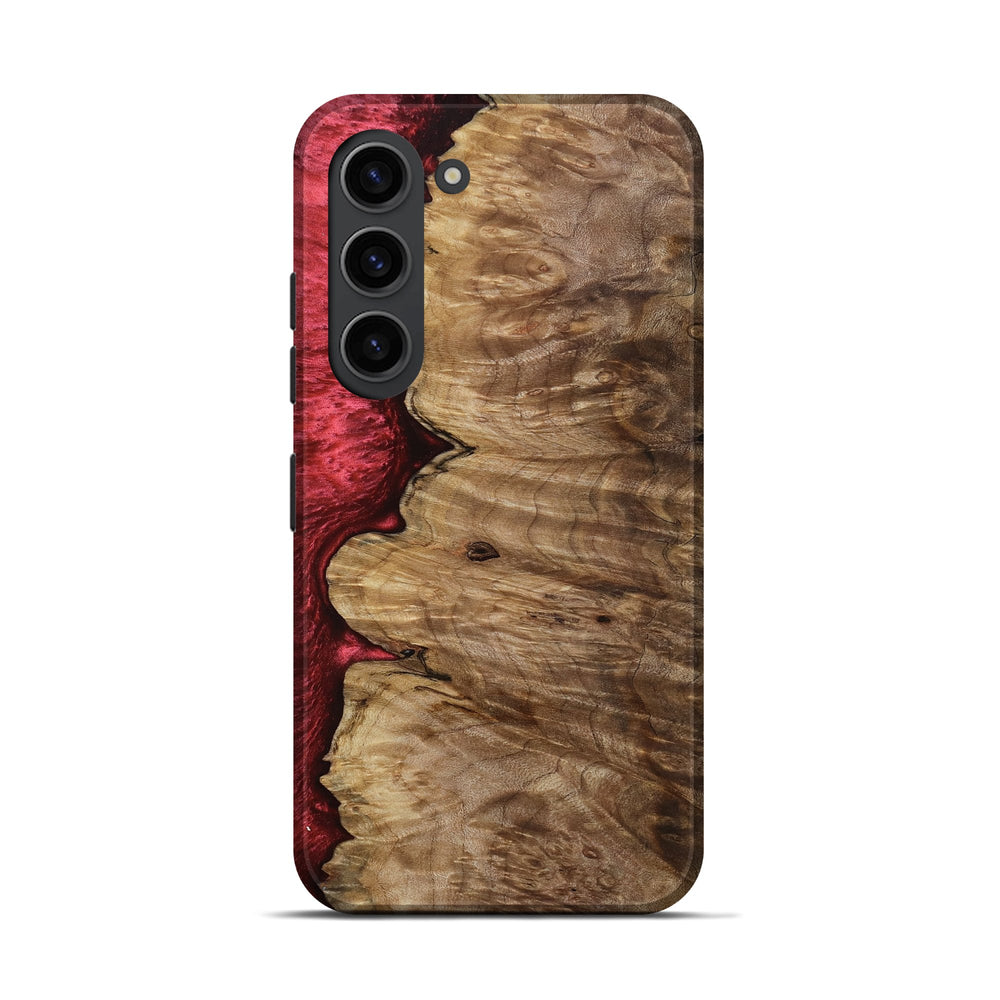 Our Live Edge cases are made from an amazing combination of stabilized wood burl and colored resin. Our stabilization process hardens the wood to protect against cracks and breaks. We do every step of the process at our shop in Northern Indiana. Perfectly fits the Galaxy S23.