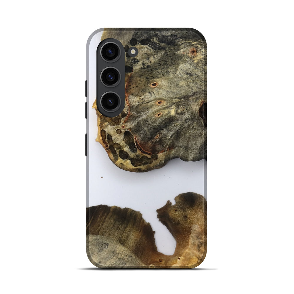 Our Live Edge cases are made from an amazing combination of stabilized wood burl and colored resin. Our stabilization process hardens the wood to protect against cracks and breaks. We do every step of the process at our shop in Northern Indiana. Perfectly fits the Galaxy S23.
