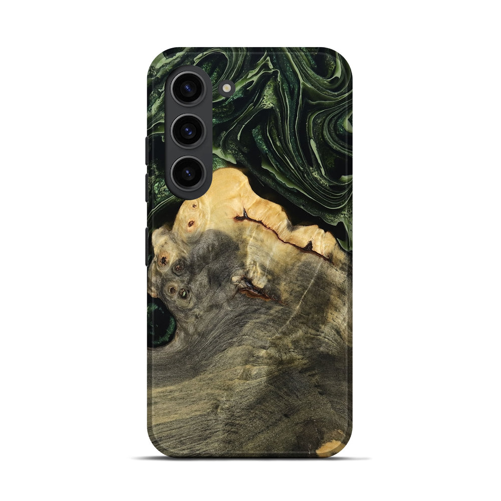 Our Live Edge cases are made from an amazing combination of stabilized wood burl and colored resin. Our stabilization process hardens the wood to protect against cracks and breaks. We do every step of the process at our shop in Northern Indiana. Perfectly fits the Galaxy S23.