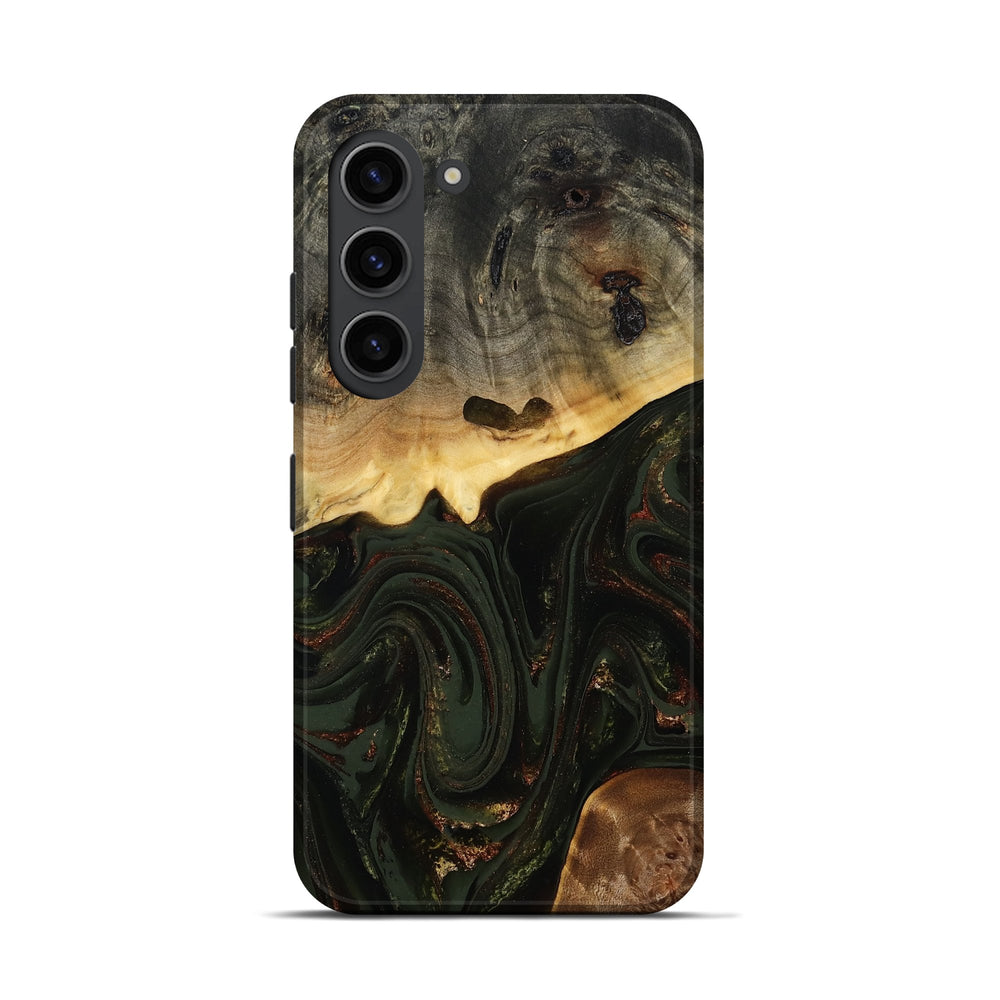 Our Live Edge cases are made from an amazing combination of stabilized wood burl and colored resin. Our stabilization process hardens the wood to protect against cracks and breaks. We do every step of the process at our shop in Northern Indiana. Perfectly fits the Galaxy S23.
