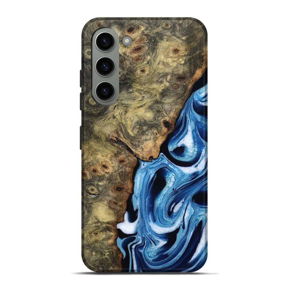 Our Live Edge cases are made from an amazing combination of stabilized wood burl and colored resin. Our stabilization process hardens the wood to protect against cracks and breaks. We do every step of the process at our shop in Northern Indiana. Perfectly fits the Galaxy S23 Plus.