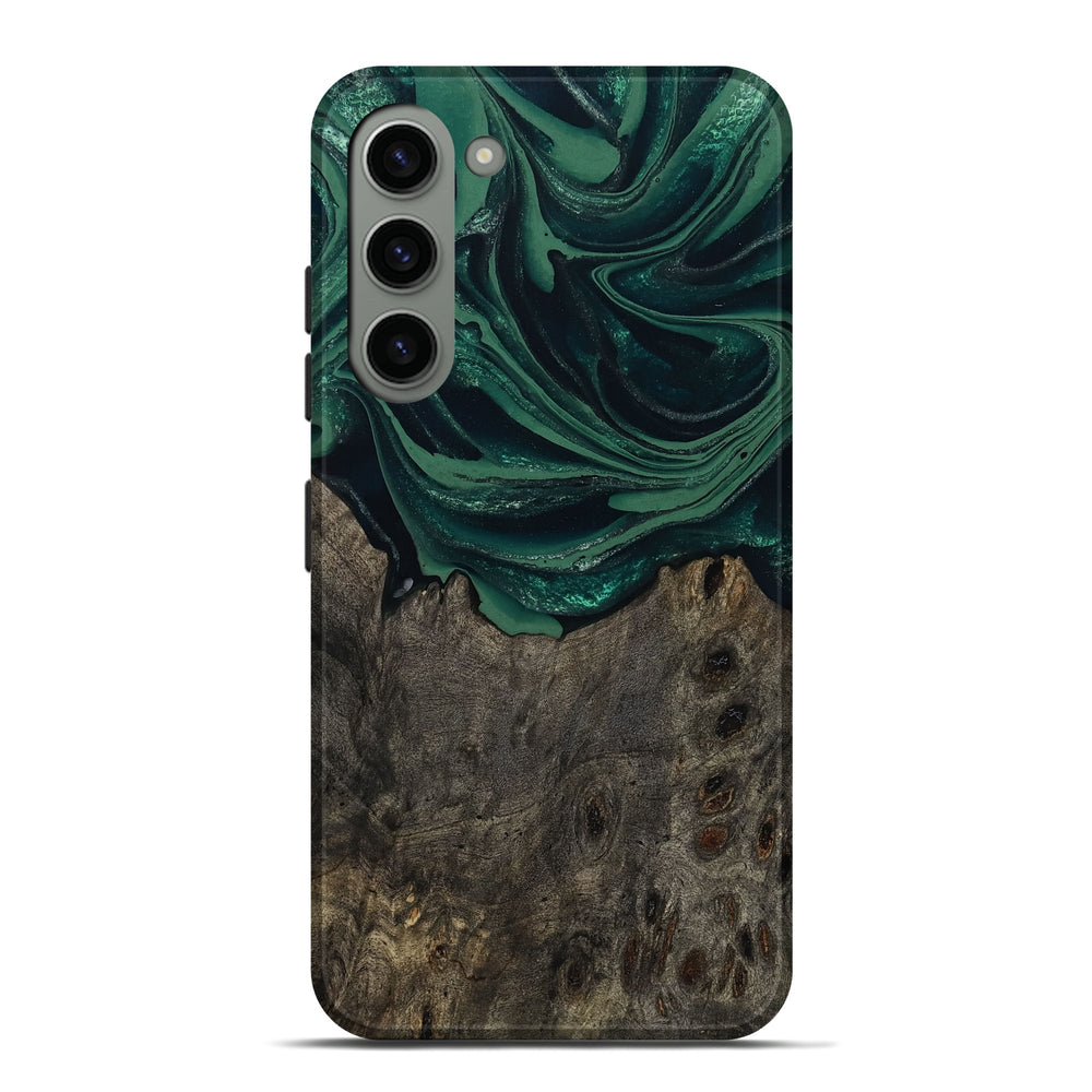 Our Live Edge cases are made from an amazing combination of stabilized wood burl and colored resin. Our stabilization process hardens the wood to protect against cracks and breaks. We do every step of the process at our shop in Northern Indiana. Perfectly fits the Galaxy S23 Plus.