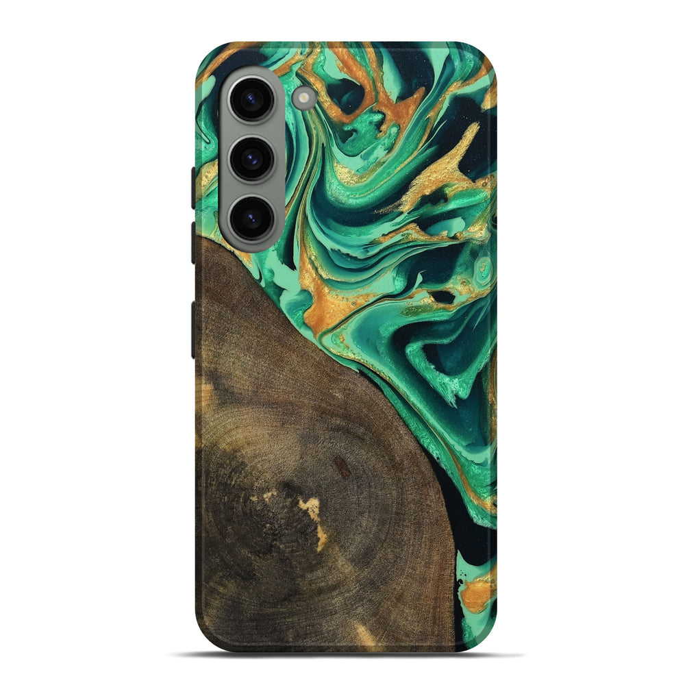 Our Live Edge cases are made from an amazing combination of stabilized wood burl and colored resin. Our stabilization process hardens the wood to protect against cracks and breaks. We do every step of the process at our shop in Northern Indiana. Perfectly fits the Galaxy S23 Plus.