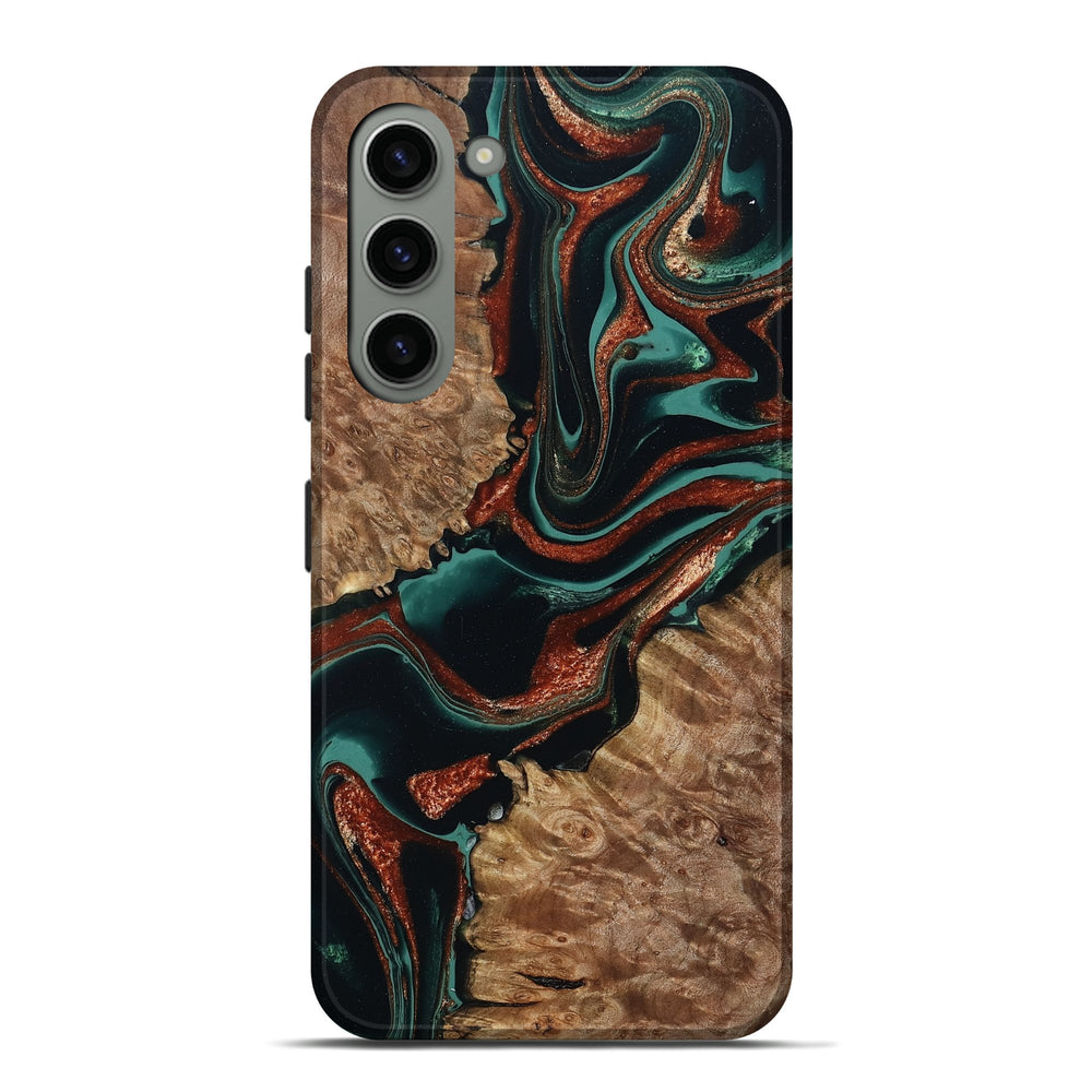 Our Live Edge cases are made from an amazing combination of stabilized wood burl and colored resin. Our stabilization process hardens the wood to protect against cracks and breaks. We do every step of the process at our shop in Northern Indiana. Perfectly fits the Galaxy S23 Plus.