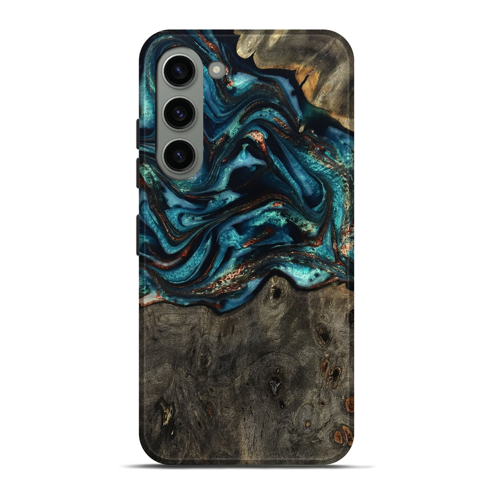 Our Live Edge cases are made from an amazing combination of stabilized wood burl and colored resin. Our stabilization process hardens the wood to protect against cracks and breaks. We do every step of the process at our shop in Northern Indiana. Perfectly fits the Galaxy S23 Plus.