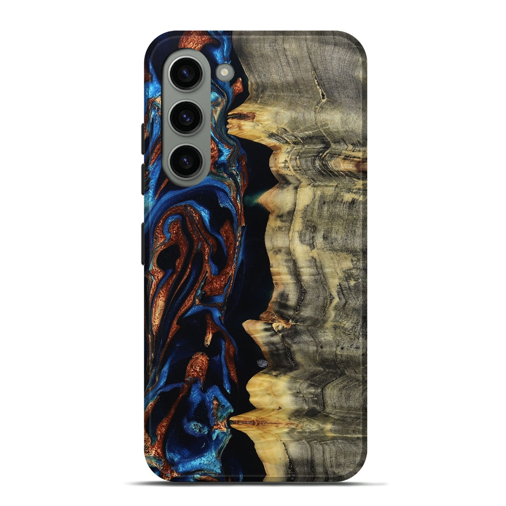 Our Live Edge cases are made from an amazing combination of stabilized wood burl and colored resin. Our stabilization process hardens the wood to protect against cracks and breaks. We do every step of the process at our shop in Northern Indiana. Perfectly fits the Galaxy S23 Plus.