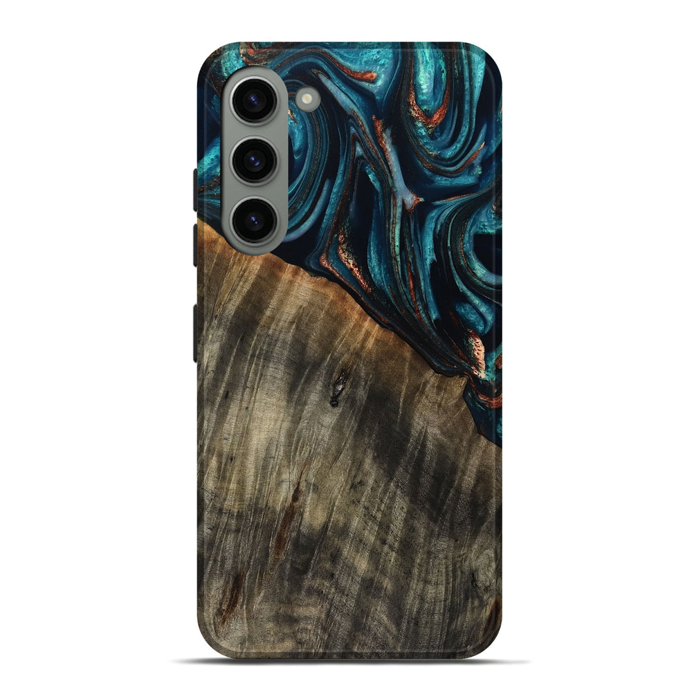 Our Live Edge cases are made from an amazing combination of stabilized wood burl and colored resin. Our stabilization process hardens the wood to protect against cracks and breaks. We do every step of the process at our shop in Northern Indiana. Perfectly fits the Galaxy S23 Plus.