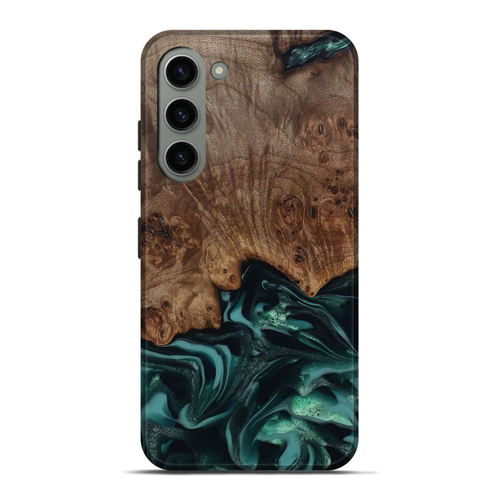 Our Live Edge cases are made from an amazing combination of stabilized wood burl and colored resin. Our stabilization process hardens the wood to protect against cracks and breaks. We do every step of the process at our shop in Northern Indiana. Perfectly fits the Galaxy S23 Plus.