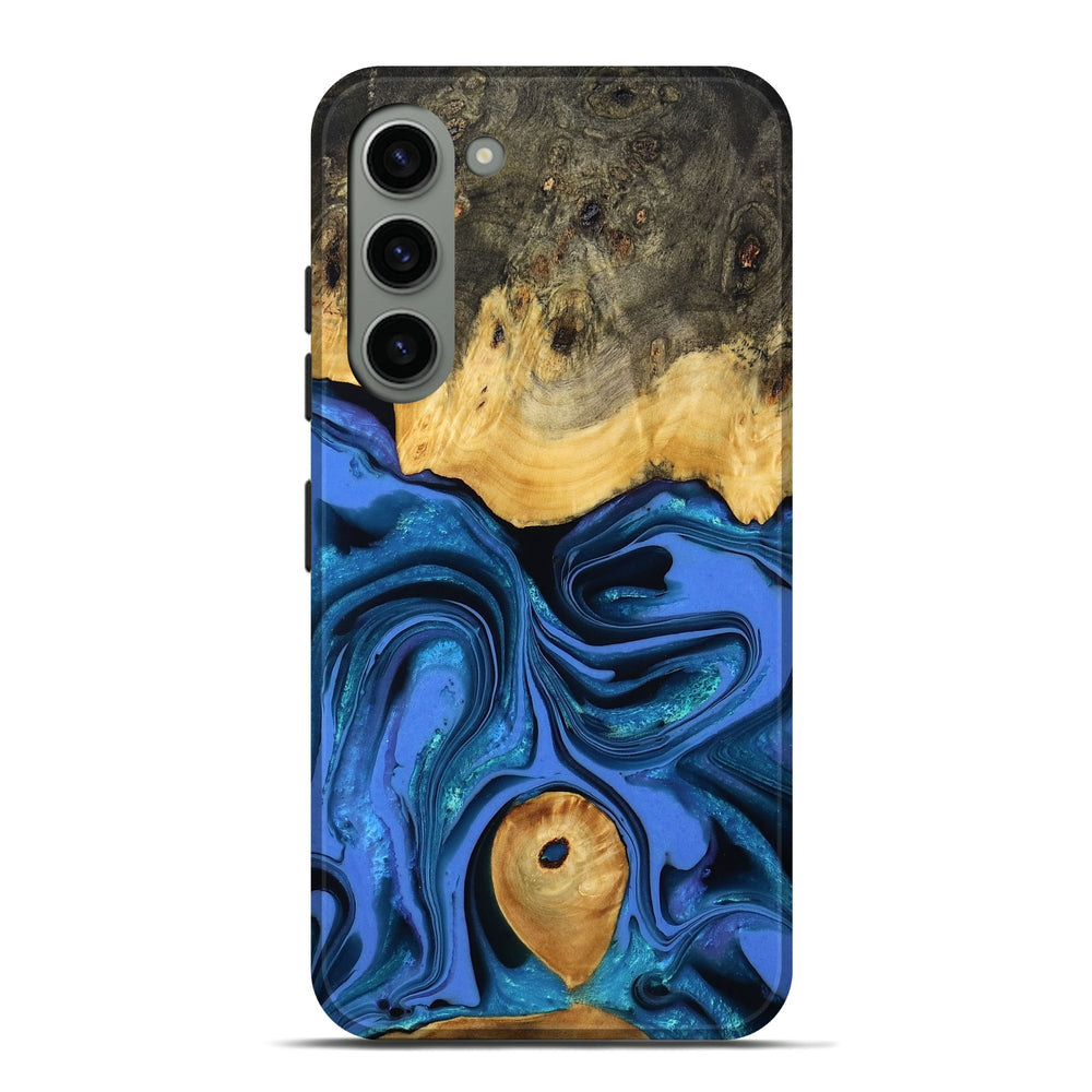Our Live Edge cases are made from an amazing combination of stabilized wood burl and colored resin. Our stabilization process hardens the wood to protect against cracks and breaks. We do every step of the process at our shop in Northern Indiana. Perfectly fits the Galaxy S23 Plus.